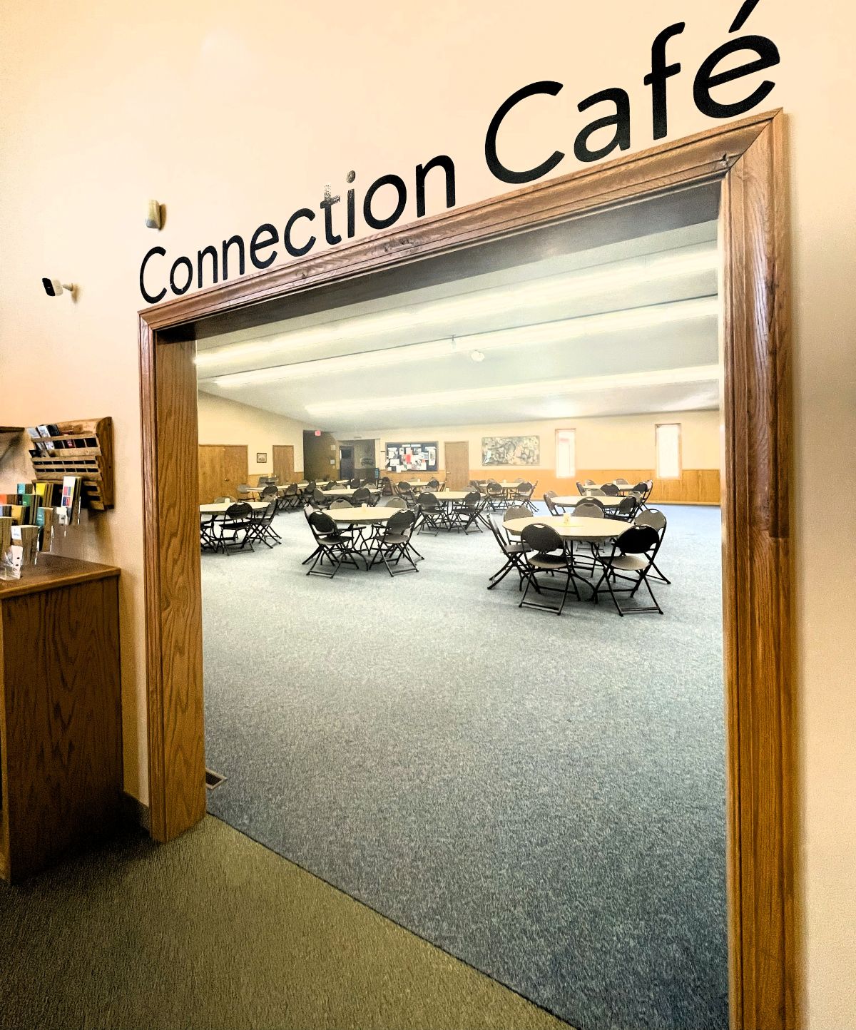 A large youth room seats 170. The smaller fellowship hall, the Connection Café, can seat up to 200. The church gym accommodates 250 to 300.